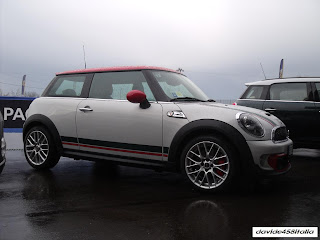 Nelle foto potete vedere una Mini Cooper JCW Jubilee all'Autodromo di Modena. Si tratta della versione pepata della Cooper S, che adotta motore, telaio, cambio, cerchi di lega da 17" e freni della vettura da corsa del Mini Challenge 2008. Il motore è un quattro cilindri 1.6 turbo da 211 cv e 260 Nm di coppia a 2000 giri, che salgono a 280 Nm con l'overboost. Il cambio è manuale a sei marce. La Mini JCW promette uno 0-100 km/h in 6,5 secondi e una velocità massima di 238 km/h. La John Cooper Works è dotata del tasto Sport, che permette di modificare la risposta dello sterzo, dell'acceleratore e dell'Esp. L'allestimento Jubilee è stato realizzato in serie limitata di 150 esemplari, per festeggiare i dieci anni di collaborazione tra Mini e BMW.